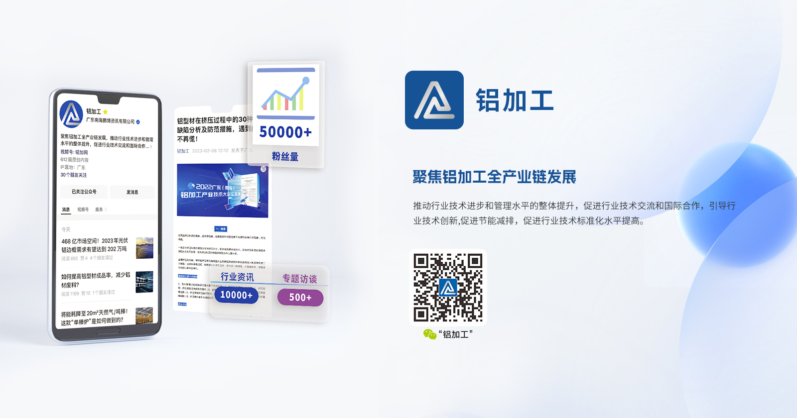 鋁加網(wǎng)(www.albiz.cn)是聞名鋁加工行業(yè)的垂直門戶網(wǎng)站,云聚鋁業(yè)新生態(tài),構(gòu)建鋁業(yè)新場景,以albiz.cn 網(wǎng)站為核心,以移動云端、鋁加工微信、鋁加網(wǎng)視頻號、《鋁型材專刊》和《鋁世界》雜志為載體,成為了鋁加工行業(yè)資訊和精準(zhǔn)傳播的首選傳媒。鋁加網(wǎng),采集和發(fā)布全行業(yè)信息資訊,提供線上展覽、在線直播、短視頻、品牌策劃、品牌運(yùn)營、品牌傳播等全方位的專業(yè)服務(wù)。